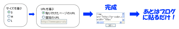 ソースをブログやHPに貼り付けることでQRコードを表示できます。